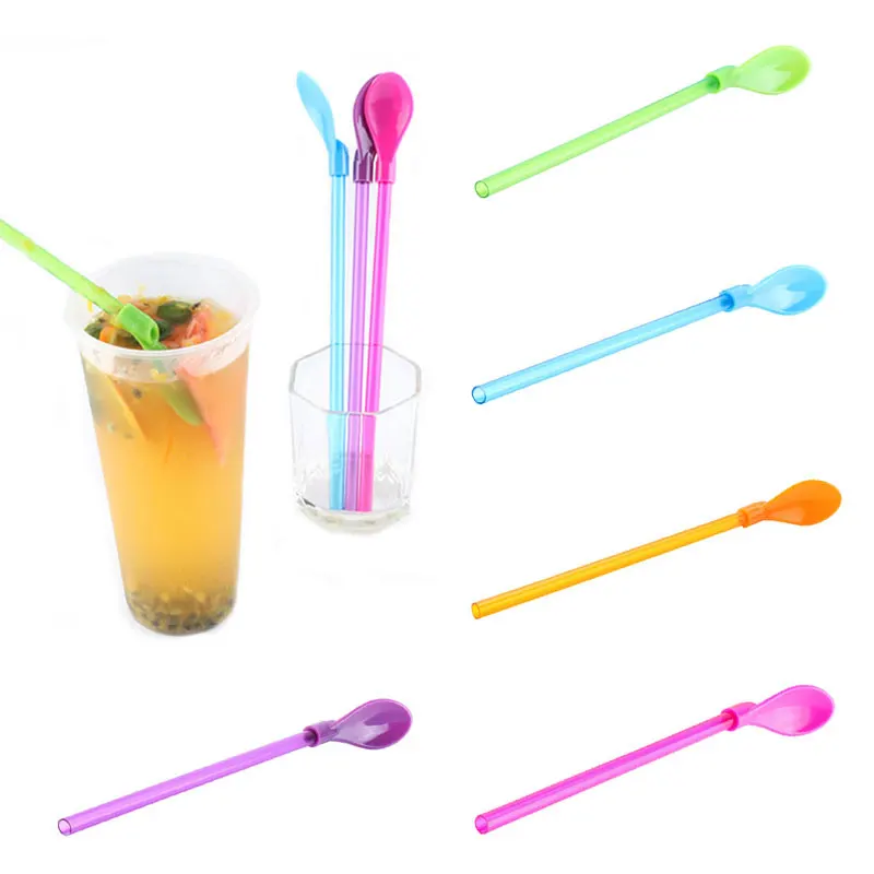 Креативная соломенная ложка двойного назначения, пластиковая ложка, встроенная соломенная ложка, посуда