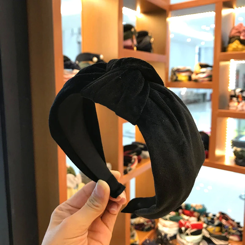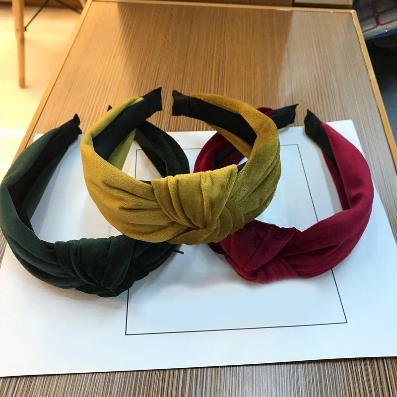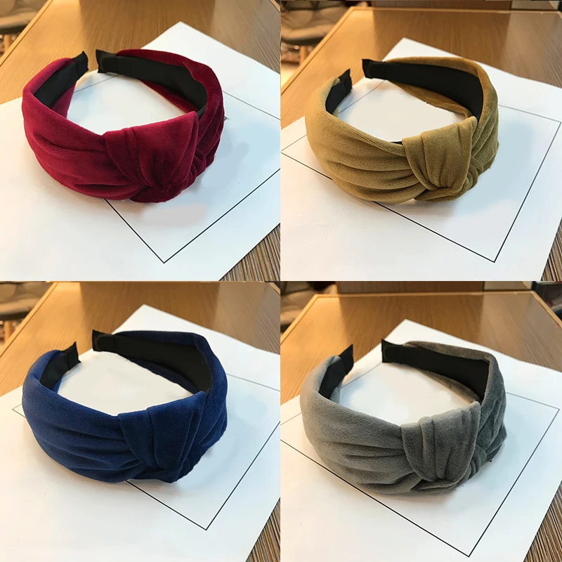 Retro Thick Velvet Women Wide Headband Cross Knotted Head Hoop Hair Accessories