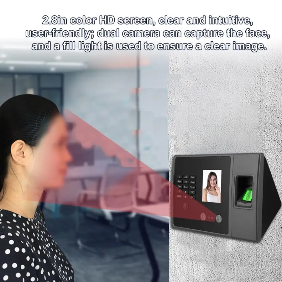 2.8in TFT HD Screen Waterproof TCP Face Recognition Fingerprint Password Attendance Machine (100-240V)