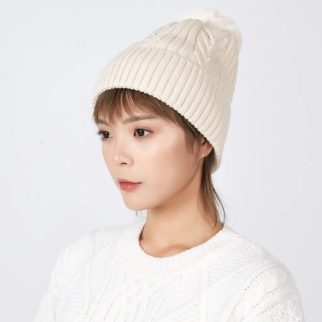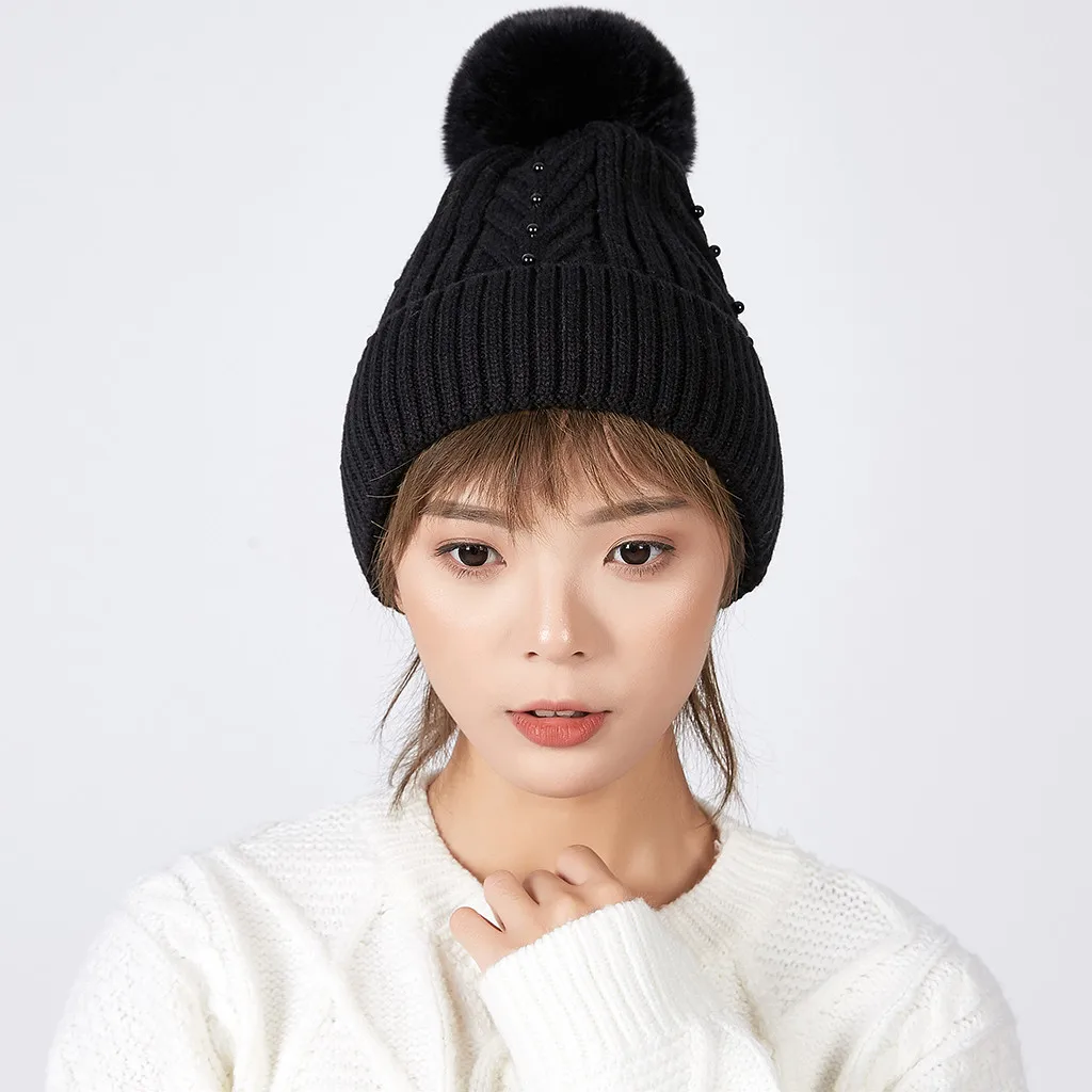 Модная женская зимняя теплая вязаная шапка с воротником