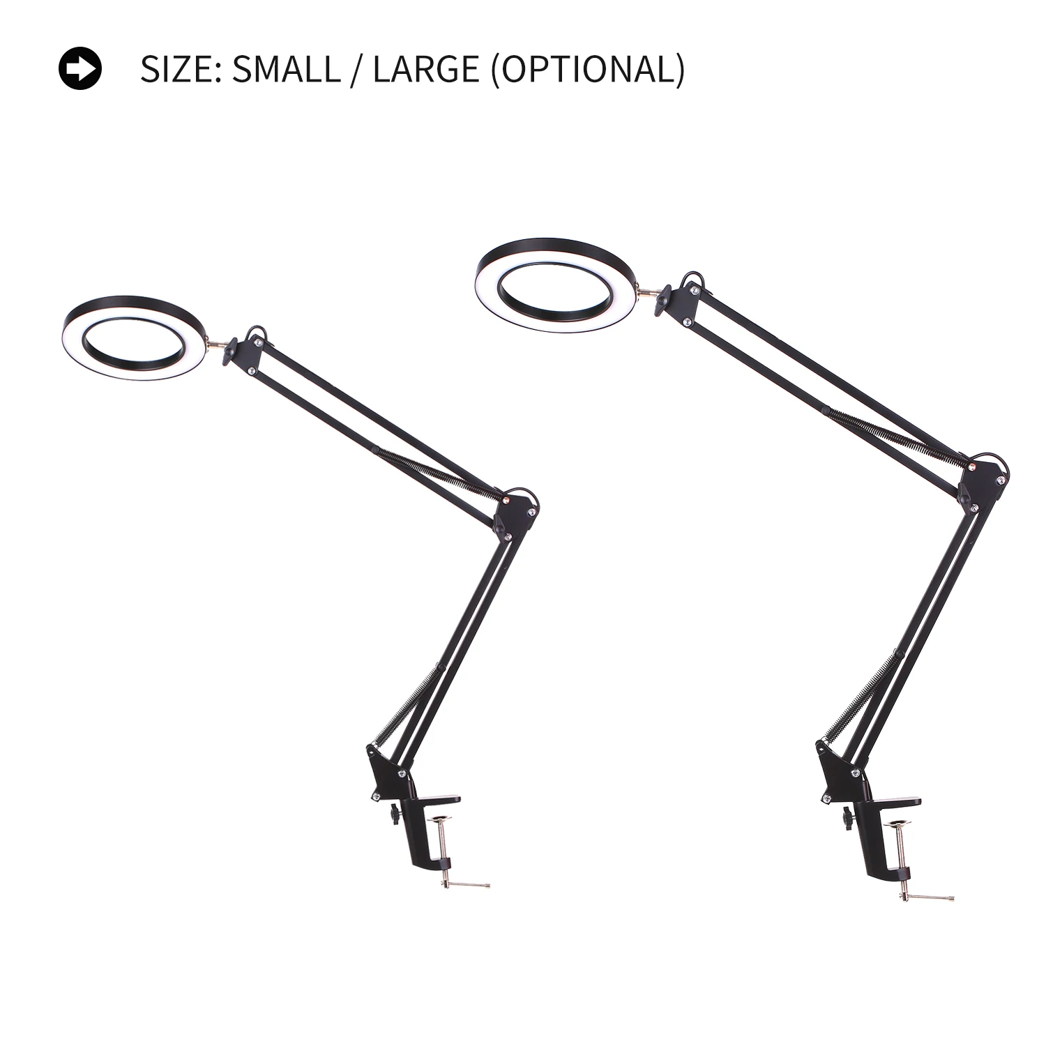 Зажим: большой c-зажим позволяет прикрепить лупу лампы к любому столу, столу, скамейке, рабочему столу или столешнице толщиной до 2 дюймов (55 мм), который не только освободит ваши руки, но и сохранит пространство для рабочего стола.