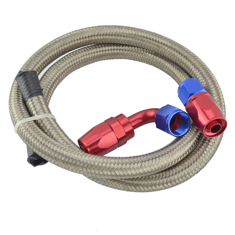 6 6-плетеный шланг из нержавеющей стали для масла/топливной линии 1 м труба + Прямая + 90 градусов поворотный красный-Буле фитинг Масляный шланг Конец адаптер Комплект