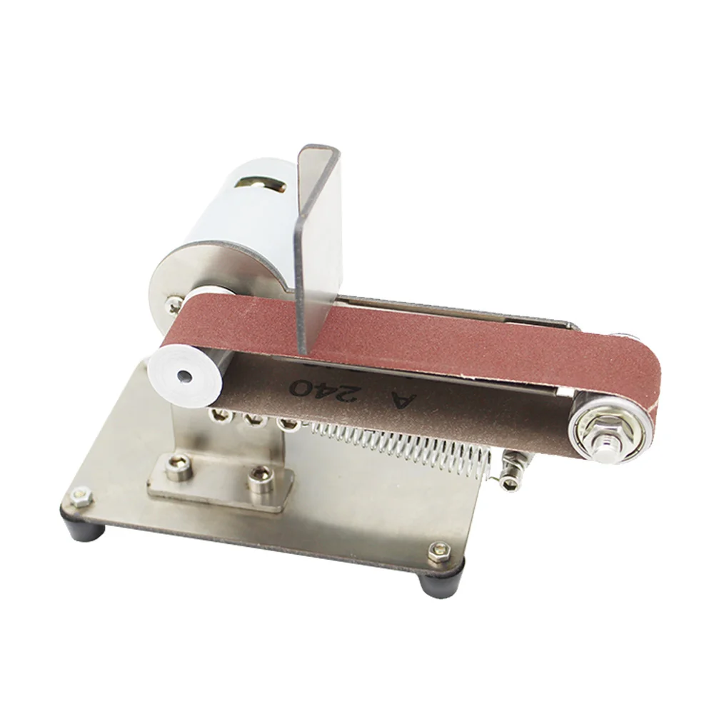 Это многофункциональный ленточный шлифовальный станок, мини портативный, низкий уровень шума, может использоваться для высокоскоростного стального сверла грубого шлифования, кромки лезвия, тонкого шлифования вольфрамовой стали токарного инструмента, полировки корень дерева Бодхи и т. Д., простой в установке и эксплуатации, это домашний инструмент DIY.