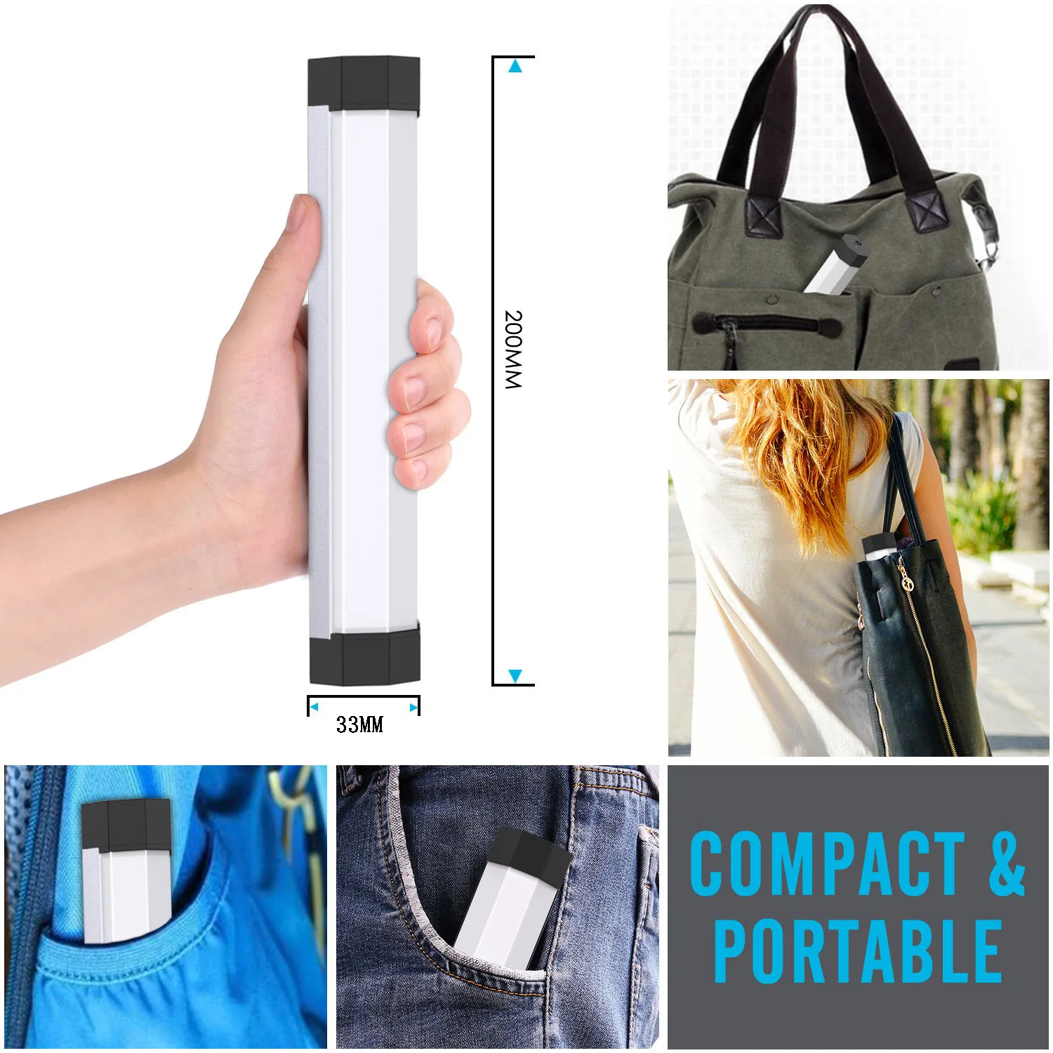 Переключатель: кнопка Физические размеры: 200 мм в длину, 33 мм в диаметре Материал: чистый алюминий, АБС Светильник угол: 140 ° Режим: 3 уровня яркости регулируется, четвёртый файл мигает, пятый файл SOS Встроенная литиевая батарея: 3,7 в ма Мощность: 3 Вт Уровень защиты: IP3X Длина usb-кабеля: около 0,3 м Комплект поставки: 1 * Светодиодный светильник для кемпинга + USB зарядка (аккумулятор 2000mA)