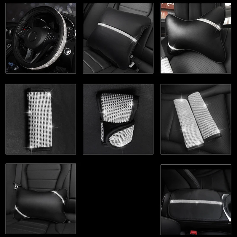 Шикарный кожаный чехол на руль для автомобиля, Кристальные автомобильные чехлы на руль, защитные аксессуары для украшения интерьера автомобиля
