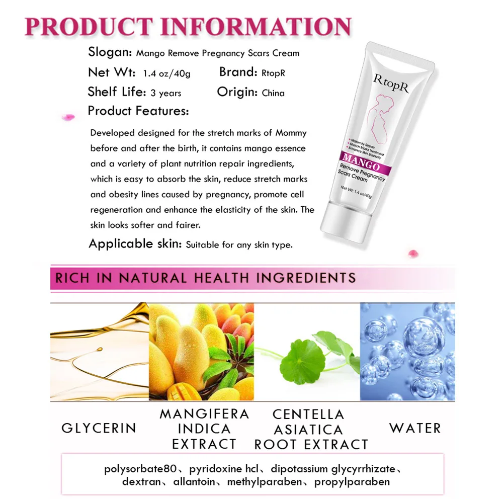 Этот крем для защиты от шрамов содержит эссенцию манго и различные ингредиенты для ремонта растительного питания, которые легко впитывают кожу.
