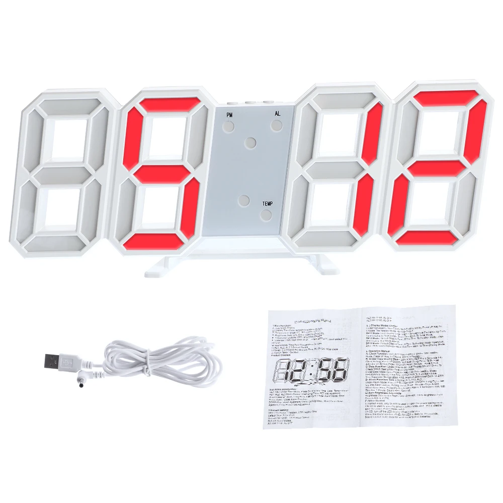 8 форменный 3D цифровые настольные часы светодиодный дисплей времени Будильник USB Повтор украшение дома