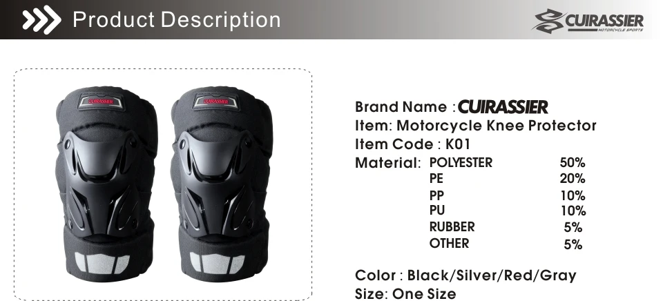 CuirassierK01/E01/K01-2/E01-2/K01-3 Knee(Elbow)braces suitable for protecting knees, like riding Motorbike/Motocross, Biking & Cycling, MTB, Skiing, Snowboarding, Wakeboarding, Football, Volleyball, Wrestling, Dodgeball, Paintball, Softball, Tactical, Hockey, Weightlifting, Workout, Cross-fit, Skating, Kickboxing, Martial Art, Jujitsu, Hunting and more.