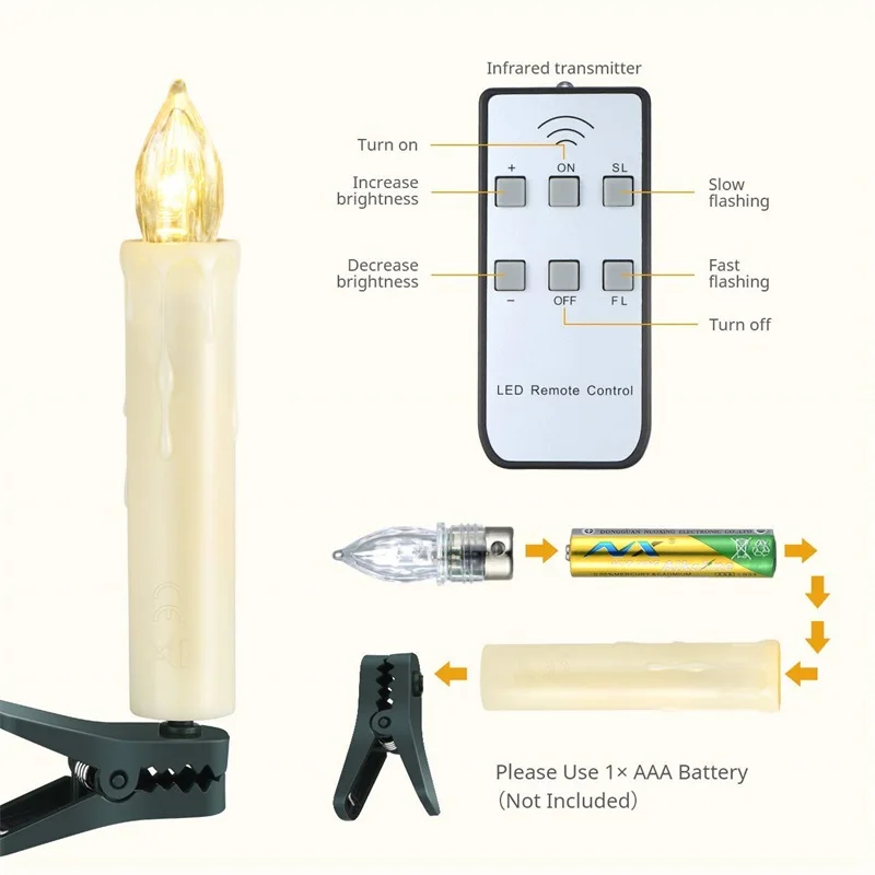 √Светодиодные свечи с зажимом-поставляются с 10 зажимами. Вы можете использовать свечи отдельно или установить зажимы, чтобы закрепить их на чем-то другом, например, на рождественскую елку.