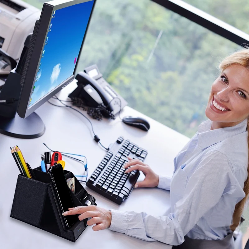 Многофункциональный: не только он может заряжать ваш мобильный телефон, но и чистить Рабочий стол или кассовый Терминал держатель ручки/pad/карты/конверт/ножницы/очки Чехол/купон и т. Д.