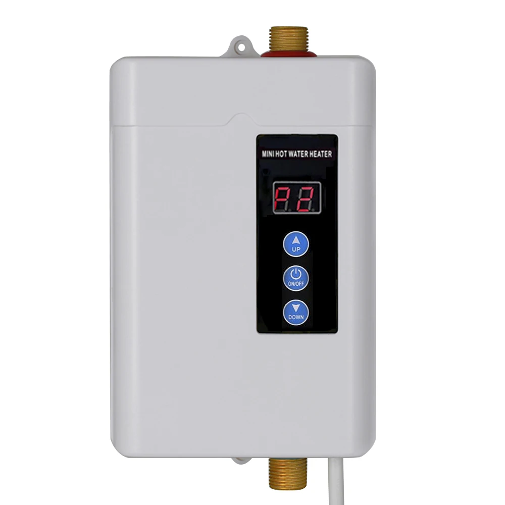 1. 3 секунды горячего, безопасного и интеллектуального, действительно термостат, не дожидаясь, 0,1 секунды автоматическое отключение при утечке 2. Электрический водонагреватель без резервуара 110 В, 3000 Вт/220 В исключает длительное ожидание и мгновенный нагрев, поэтому вы можете использовать горячую воду по своему усмотрению 3. Подходит для универсальных водопроводов: диаметр дюйма (приток или отток). 4. Защита: защита от протечек, водонепроницаемость IPX4, защита от сухого нагрева, изоляция от воды и электричества, Автоматическое отключение питания в неактивном состоянии, автоматическое отключение от перегрева. 5. Мини-корпус, легко устанавливается под ванной или кухонной раковиной для мытья посуды, еды, одежды, лиц и других функций. 6. Дистанционное управление для установки температуры Кнопка сенсорного экрана для регулировки температуры, диапазон температур 28-55 градусов, Внутренний бак представляет собой алюминиевый литой нагревательный корпус, который может запоминать температуру настройки