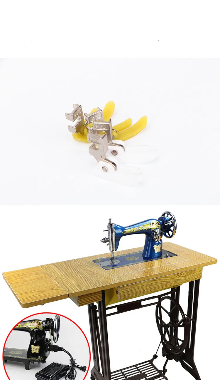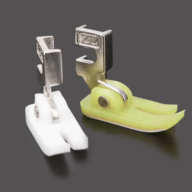 White and Non-stick base glides smoothly over fabric. This foot will fit Industrial Needle Feed (Compound Feed) Sewing It can use on Leather, Laminated Foam, Rubber Fabrics, Plastics, Synthetics, Pile Fabrics, etc. Package included 2 Pcs Presser Foot