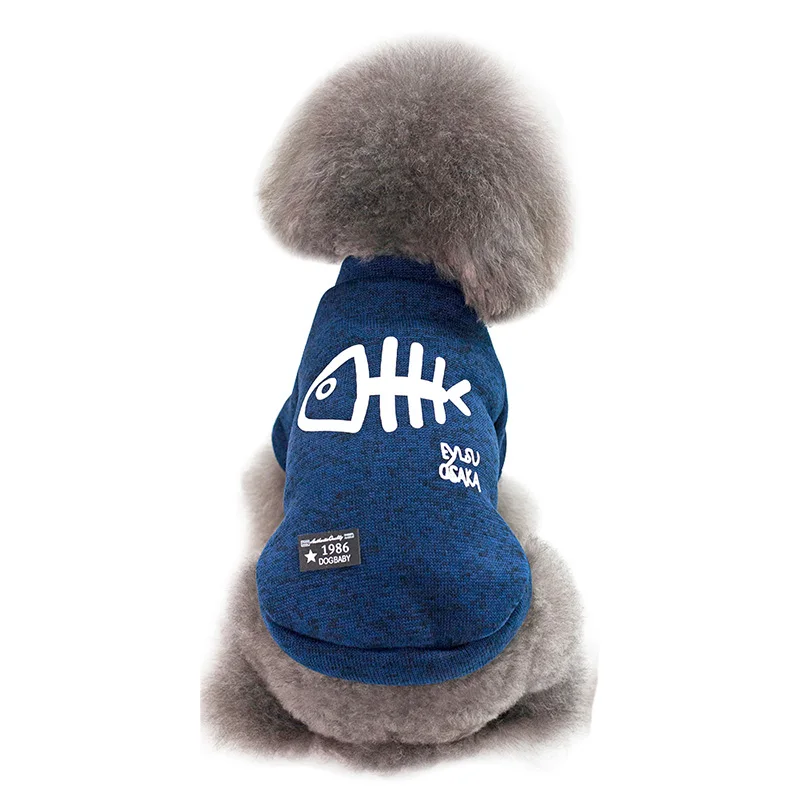 Пальто с изображением рыбки и кости для собак; Зимняя теплая одежда для собак; Куртка; Одежда для щенка; Толстовки