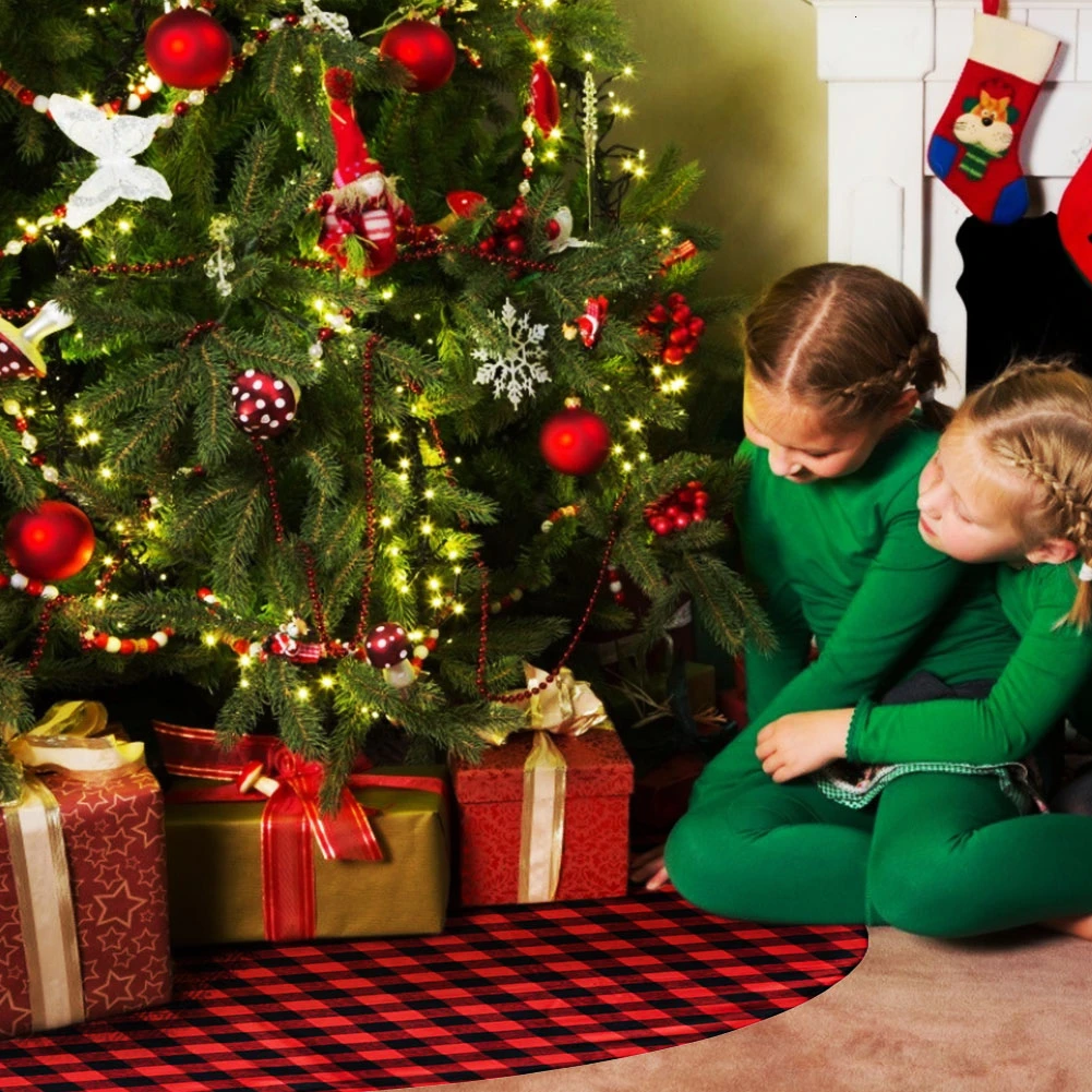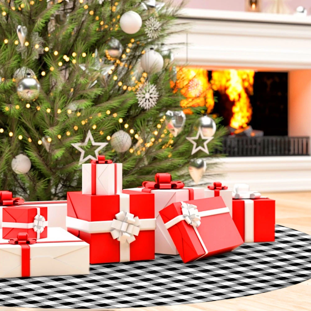 1 шт плед буйвола и изображением новогодней ёлки лучший юбка 122/127 см Рождество Рождественские украшения для дома с утолщённой меховой опушкой, дерево юбка ковер круглый коврик