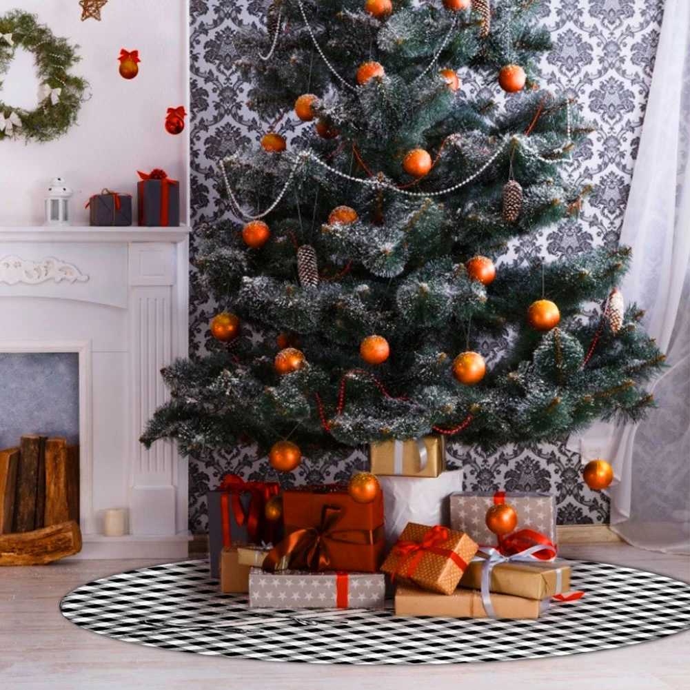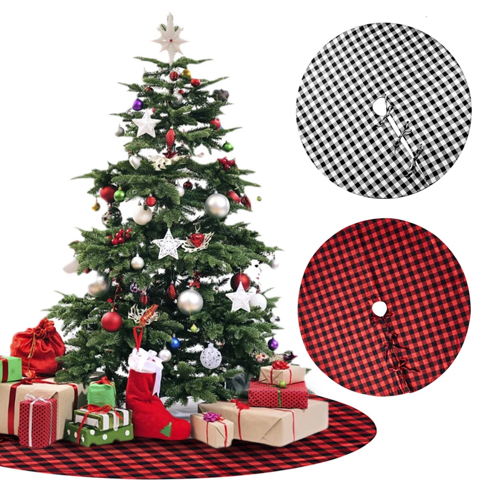 Применение: натуральная Мешковина Рождественская елка юбка с клетчатым галстуком фиксирует юбку вокруг основания рождественской елки и идеально подходит для деревенского/модного/фолк/кантри/потертый шик/украшение дома.