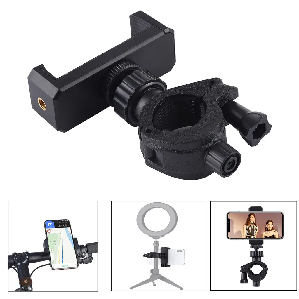 Изготовлен из высококачественного материала, прочный и полезный. Отличный способ сделать снимки для себя или для людей, следящих за вами. Адаптер для руля надежно крепится к рулю, подседлу, вилке, стреле, рулоне и т. д. Зажим для телефона имеет мягкую защитную резинку, чтобы лучше держать телефон прочно, защищая его. Основание зажима телефона и задняя часть каждого устройства имеют резьбовые отверстия 1/4 дюйма, возможность подключения к винту 1/4 дюйма любого устройства.Продукт включает в себя