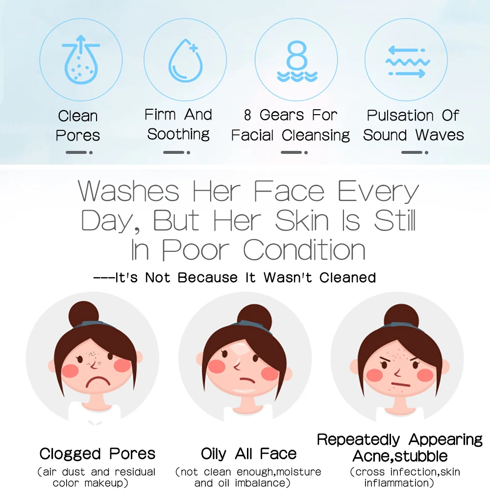 * Специально для мытья лица * Глубокая чистка + массаж кожи * Компактный и портативный * Регулировка прочности 8 передач * Ультразвуковая вибрационная очистка пор * Долго держится после зарядки