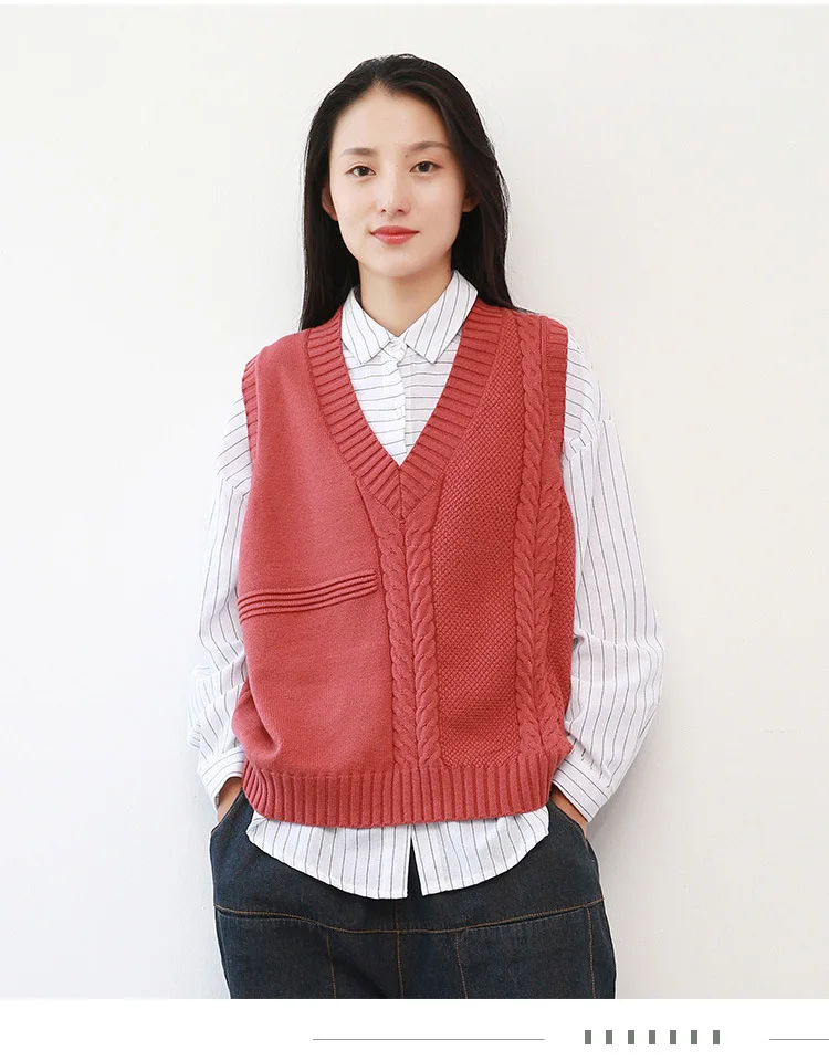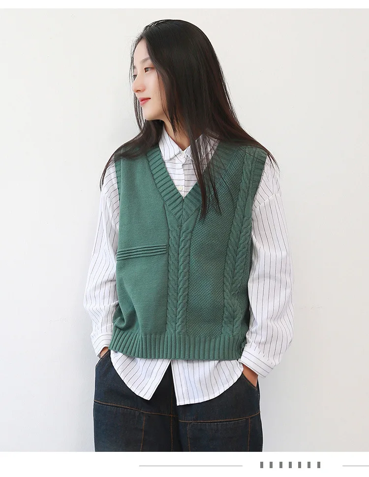 Винтажный вязаный жилет без рукавов с v-образным вырезом