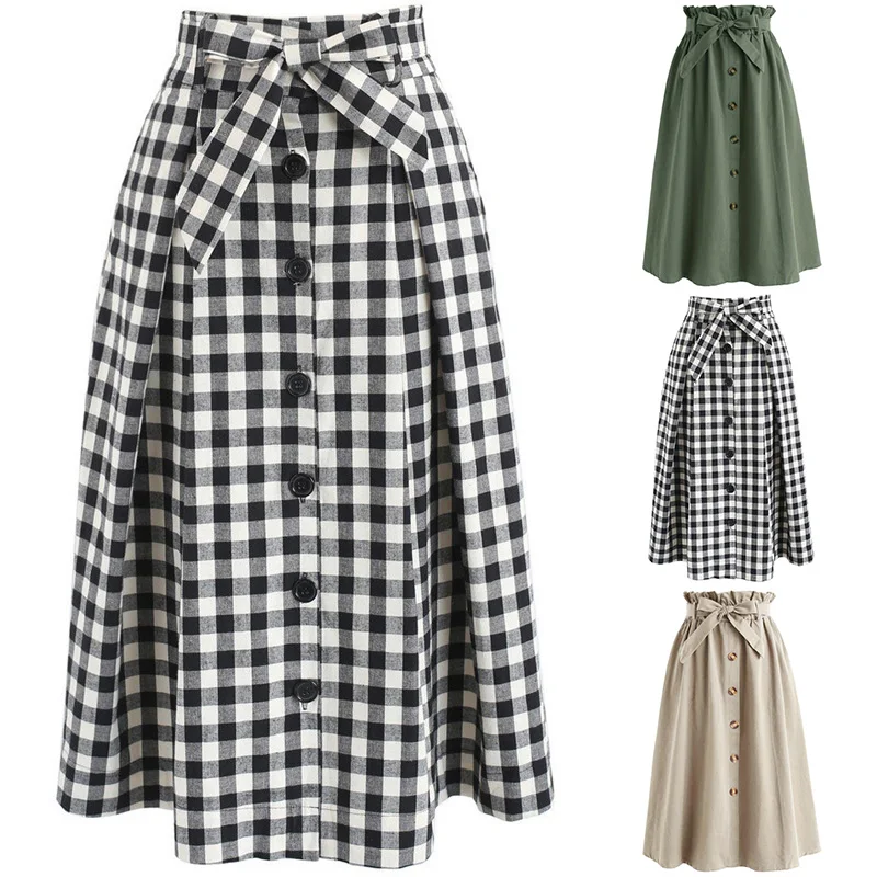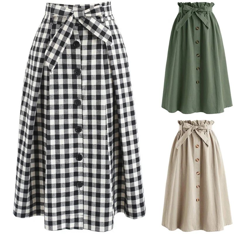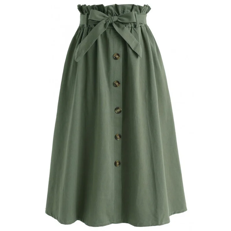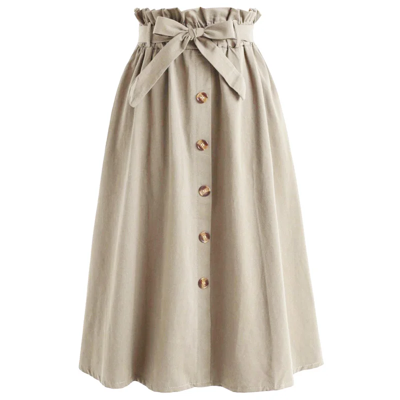 * Описание товара: женские юбки модные пуговицы декоративный бант повседневная юбка свободный городской стиль