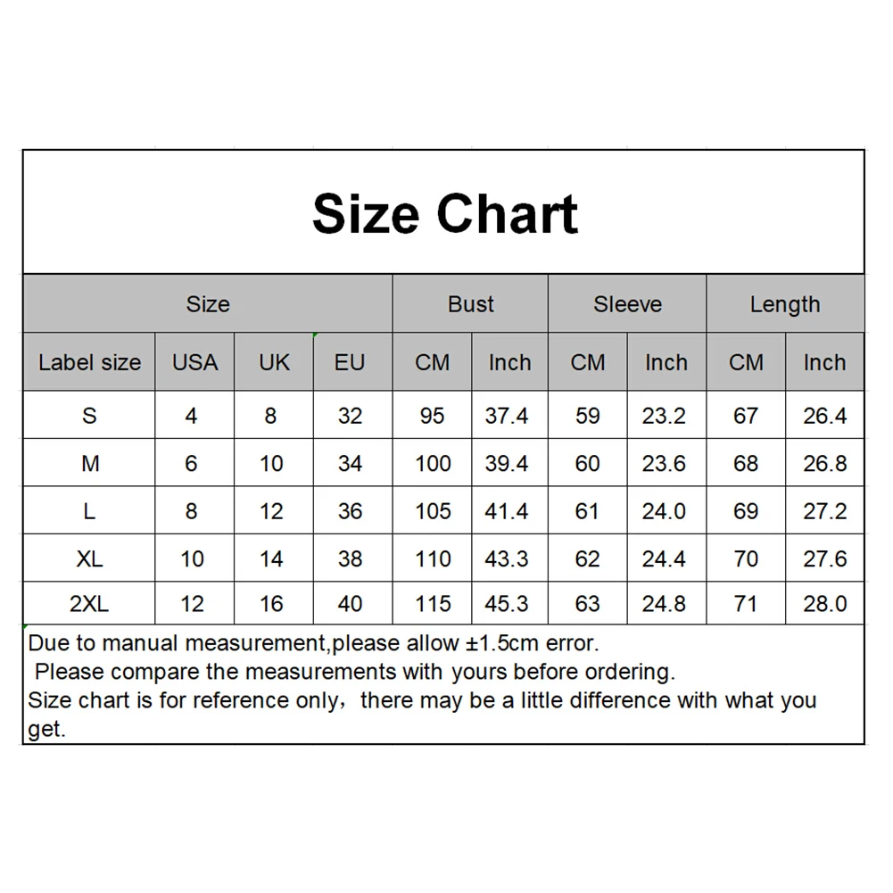 [Наш Размер XL] Обхват груди: 110 см/43,31 ", рукав: 62 см/24,41", Длина: 70 см/27,56 "(прибл.)