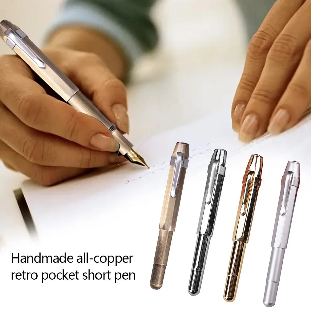Ручка из меди Ретро Карманный короткий авторучка восьмиугольная ручная работа Бизнес подарок винтажная карманная короткая ручка