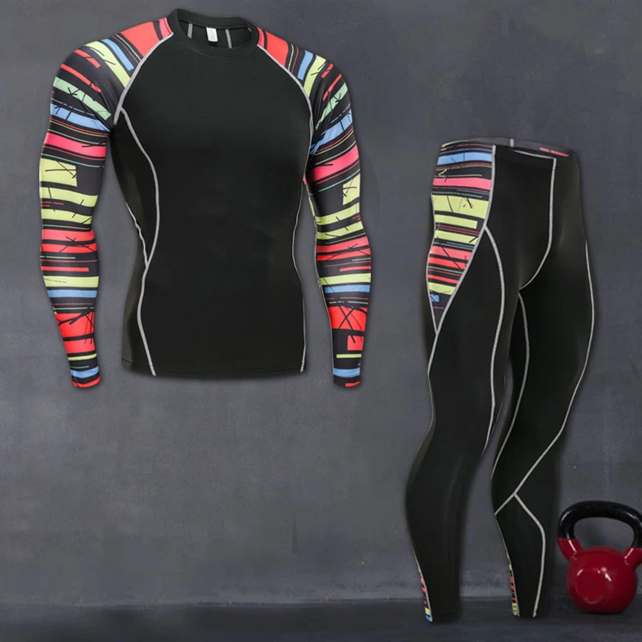 Мужская компрессионная футболка, спортивный костюм для спортзала, джоггер, тонкая гимнастическая красная рубашка, брюки, быстросохнущая Спортивная одежда для тренировок