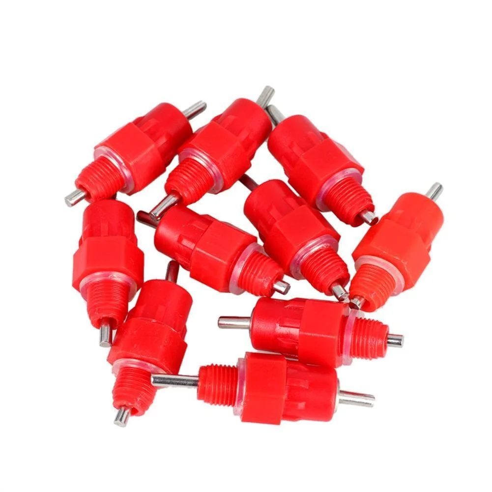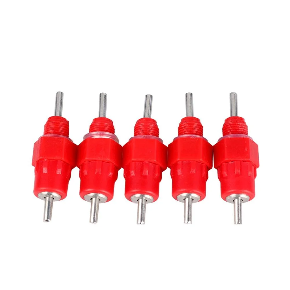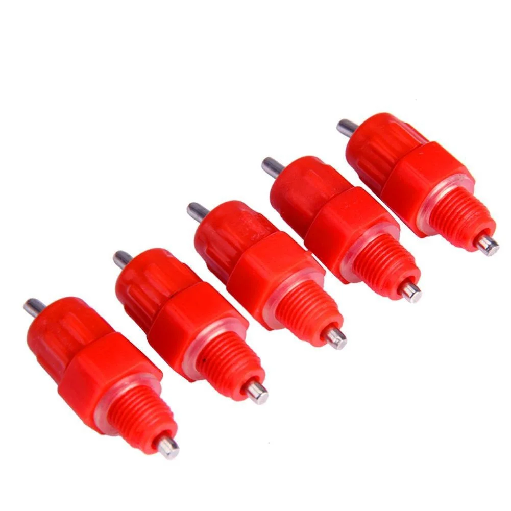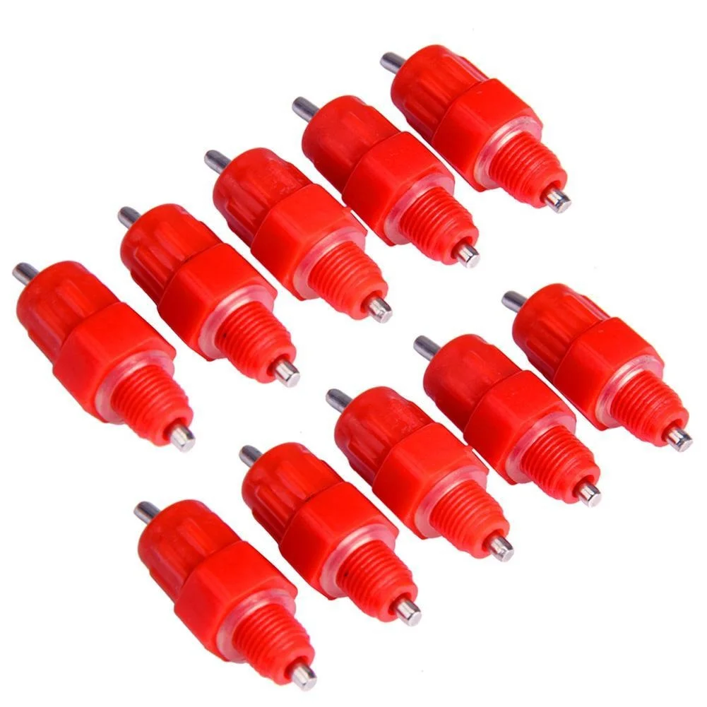 Каждый блок имеет 360 градусную насадку из нержавеющей стали, которая будет работать под любым углом. Хорошая конструкция конструкции --- съемные нижние части для легкой очистки. Изделие легко устанавливается в ПВХ трубу, ведро на 5 галлонов или контейнер .. Просто вкрутите в просверленное отверстие. Нет опыта нужно .. Дизайн Красного цвета притягивает птиц к быстрому использованию, им уже день или 5 лет. Отлично подходит для бройлеров, слоев, заводчиков, пуллетов, цыплят, уток и других игровых птиц. Они все любят ваши водяные соски.