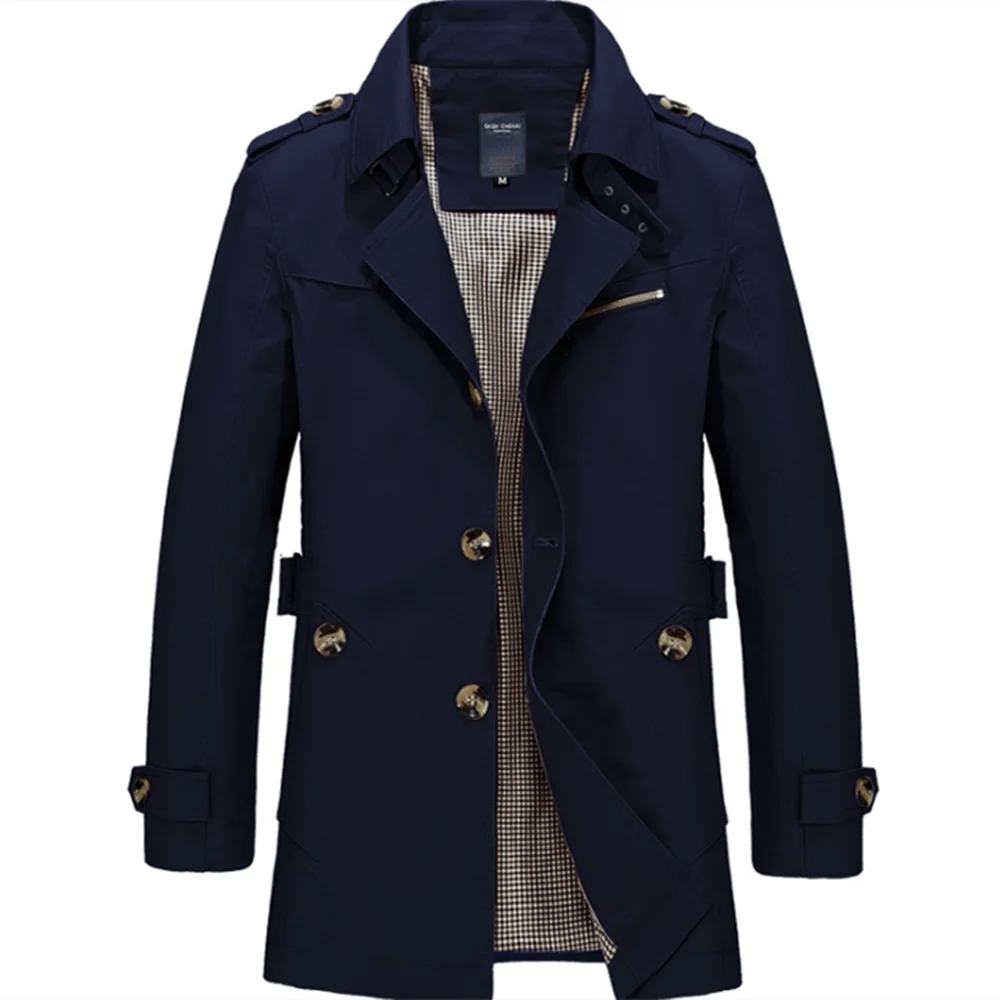 Модный осенне-зимний мужской Тренч, модная ветровка, однотонный однобортный Тренч, длинные пальто для мужчин, повседневные куртки, верхняя одежда