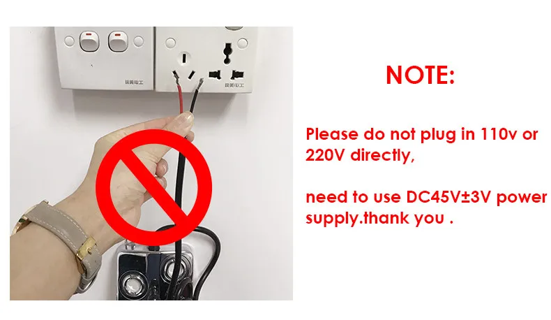 1. Пожалуйста, не подключайте напрямую к источнику питания 220 В или 110 В, вам необходимо использовать источник питания 45 В ± 3 В постоянного тока.
