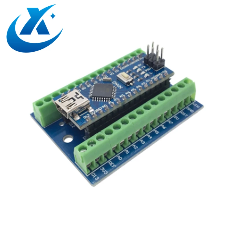Это клеммный адаптер для Ard uino Nano. Этикетки для Ard uino Nano версии 3,0, Однако вы все еще можете использовать этот адаптер для более старой версии (Нужно только запомните, что A0-A7 в обратном порядке). Вы можете использовать этот адаптер, чтобы легко подключить для Ard uino Nano к внешнему миру с помощью подключения проводов. Размер доски: 5,2x3,5 см (прибл.)