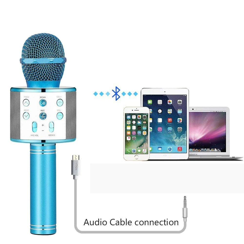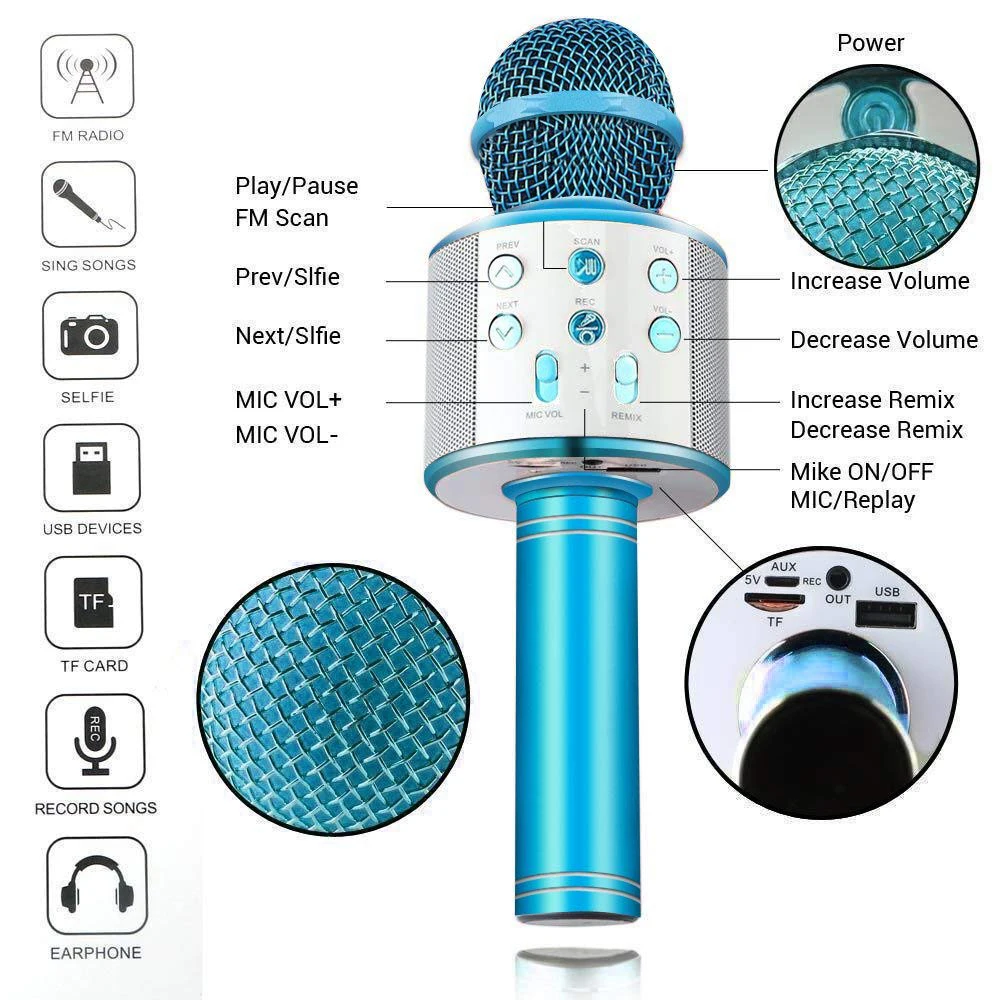 Подходит для петь, записывать и общаться онлайн с этим новым захватывающим микрофоном для караоке. Микрофон позволяет петь любимые песни.