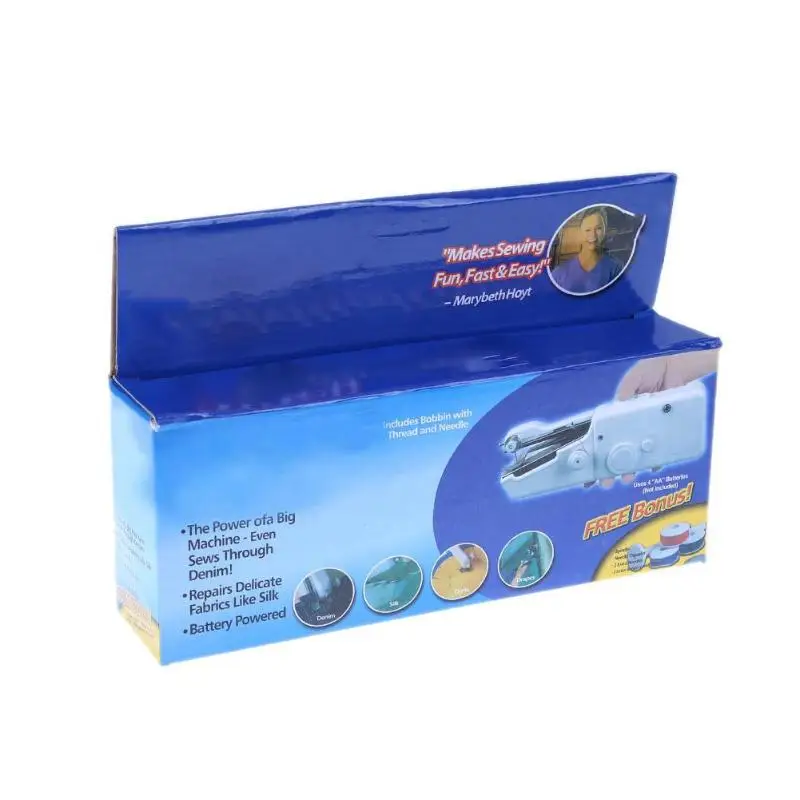 Небольшой размер, может использоваться одной рукой, легко носить с собой и хранить. Полуавтоматическая швейная машина, ручная, чтобы нажать кнопку, продукт может начать работу. Батарея в комплект не входит, клиенты должны подготовить 4 батареи № 5