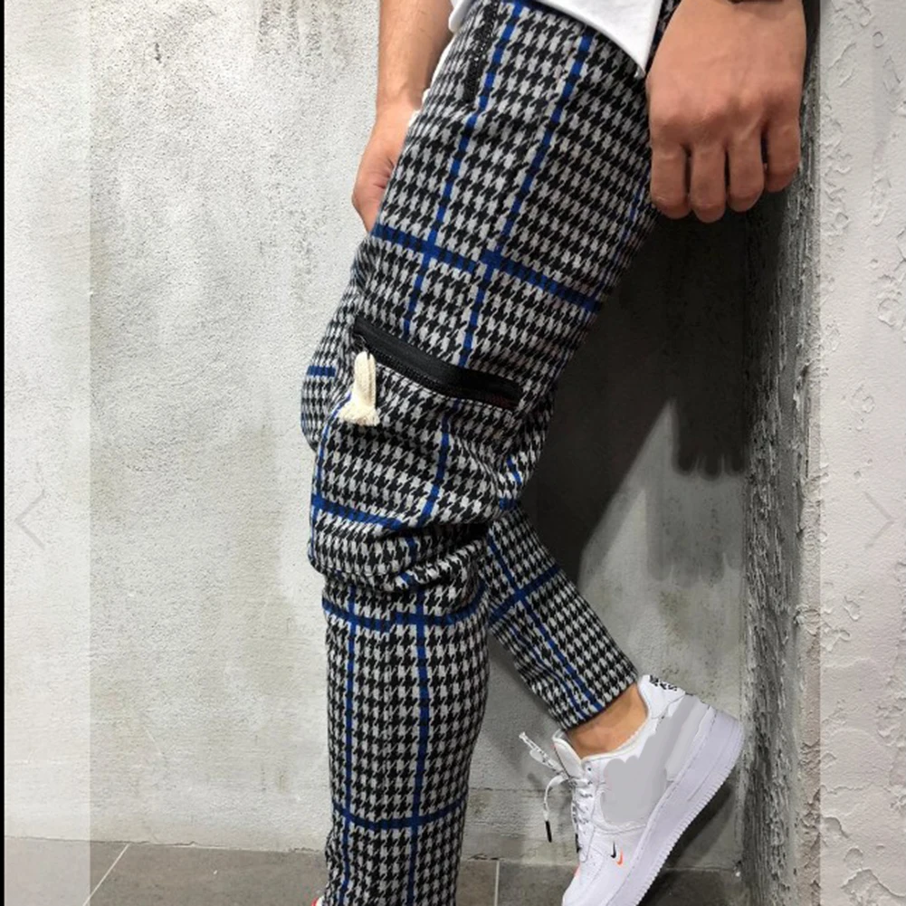 Мужские спортивные брюки с принтом «гусиная лапка» и кулиской для отдыха, узкие брюки для бега
