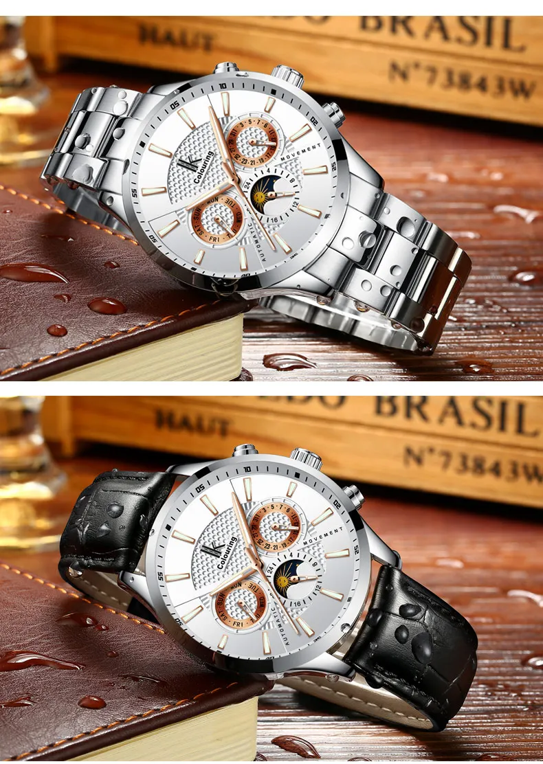 Классические часы для мужчин, механические наручные часы из нержавеющей стали с кожаным ремешком, мужские часы от ведущего бренда, роскошные часы