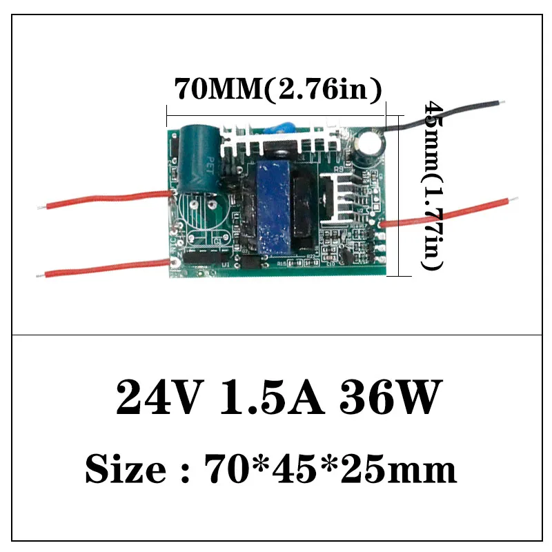 Isolated Driver 12W LED DriverInput Voltage : 85-265VOutput Voltage : 12VOutput Current : 1A 24W LED DriverInput Voltage : 85-265VOutput Voltage : 12VOutput Current : 2A 36W LED DriverInput Voltage : 85-265VOutput Voltage : 12VOutput Current : 2A
