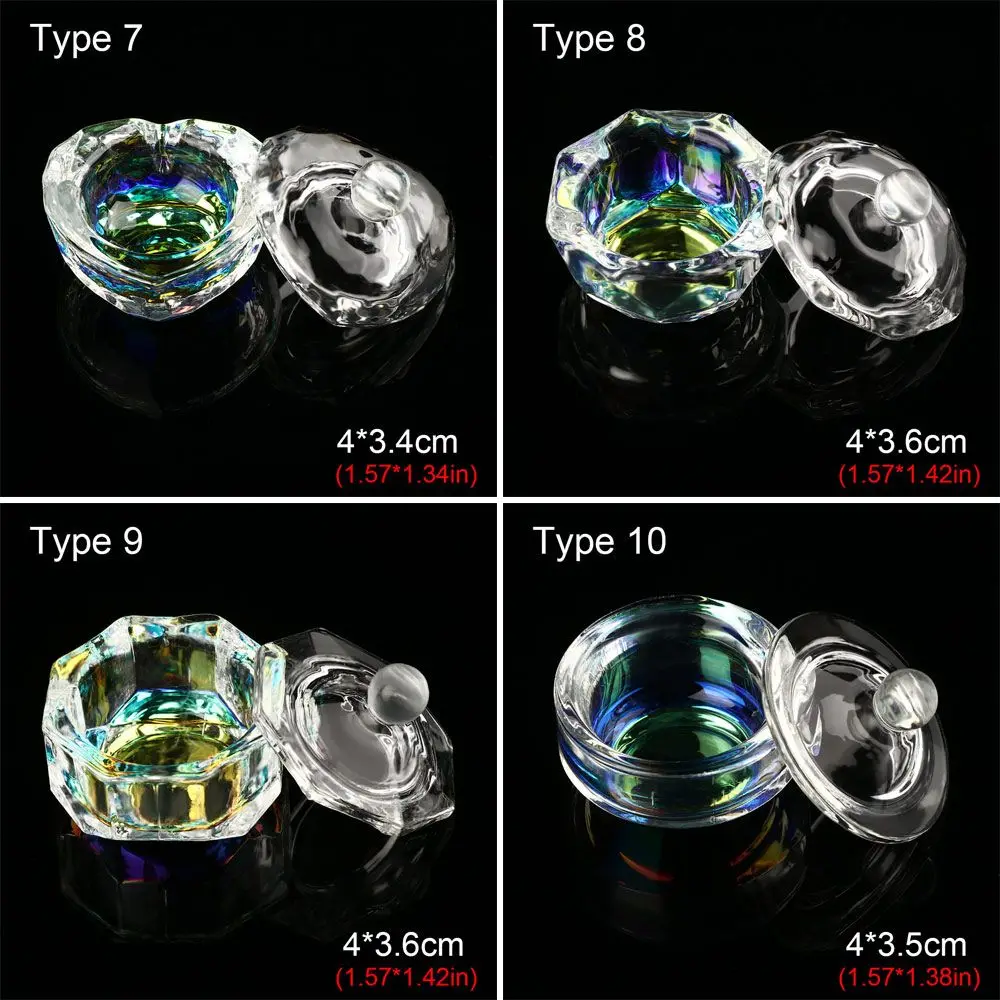 Горячая продажа 1 шт. акриловое Радужное Хрустальное стекло для дизайна ногтей чашка жидкий порошок блюдо с крышкой держатель для миски оборудование для маникюра Инструменты для декора ногтей