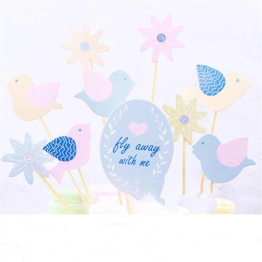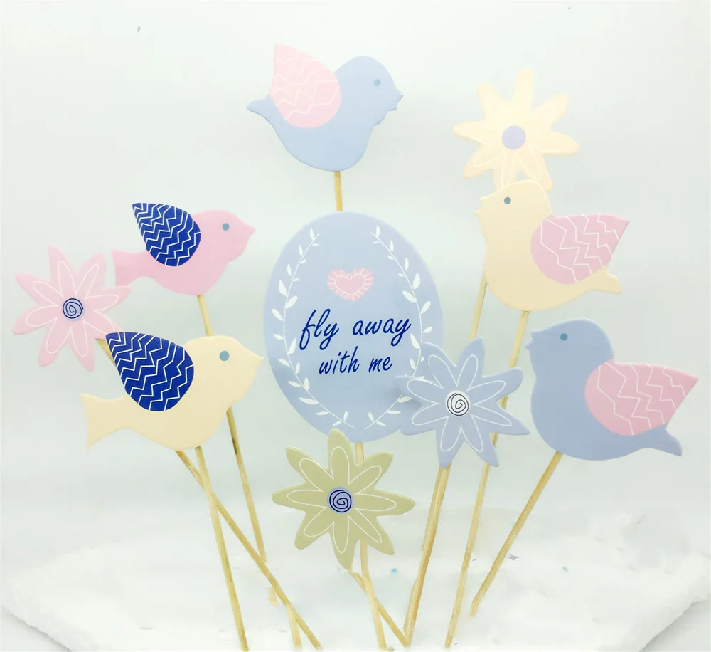 Описание: 1 комплект с птицей, с днем рождения, кекс, торты, флажки для торта, детский душ, украшение на день рождения, торты, принадлежности для выпечки