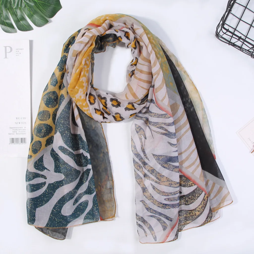 Для женщин шаль Париж пряжа Осенний Леопардовый принт шарфы шарф