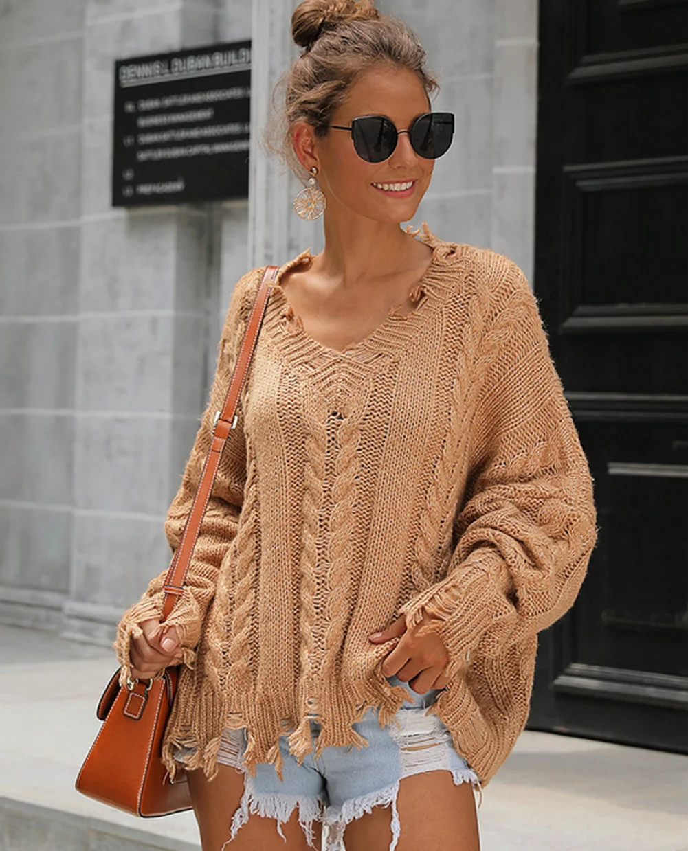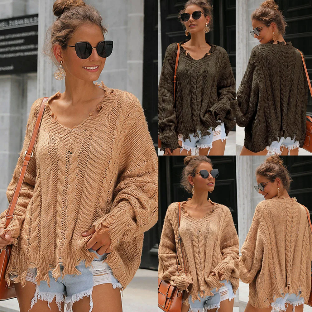 Женский свободный вязаный свитер пуловер Топы Описание: Здравствуйте! Добро пожаловать в наш магазин! Качество на первом месте и самый лучший сервис. Все покупатели — наши друзья. 100% Новинка и высокое качество Основной цвет: коричневый, темно-коричневый Стиль: новый модный, повседневный Материал: полиэстер Дизайн: Асимметричный вязаный свитер Patyern Тип: Сплошной Сезон: осень, зима Длина рукава: длинный рукав Воротник: с круглым вырезом Повод: повседневные, вечерние Размер: S, M, L, XL Размеры таблицей: