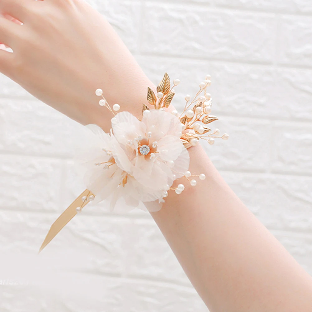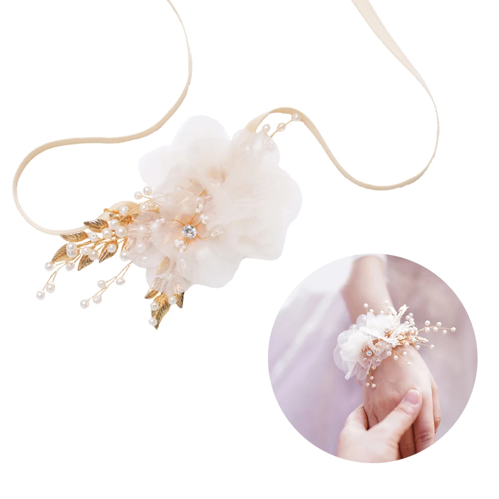 1 шт. корсаж на запястье Фея ткань бусины ручной цветок браслет для подружки невесты