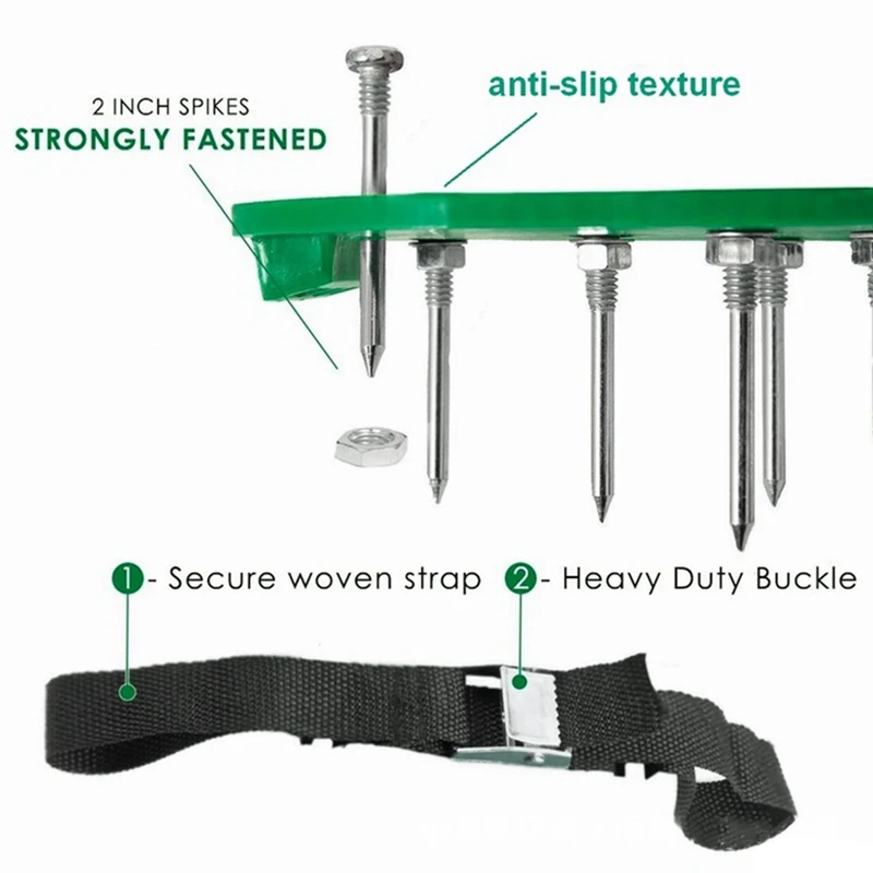 Then,you just put on this spikes shoes out of your sport shoes,adjust strap size to fit your sport shoes and tight the buckle,then walk around the whole lawn step by step.