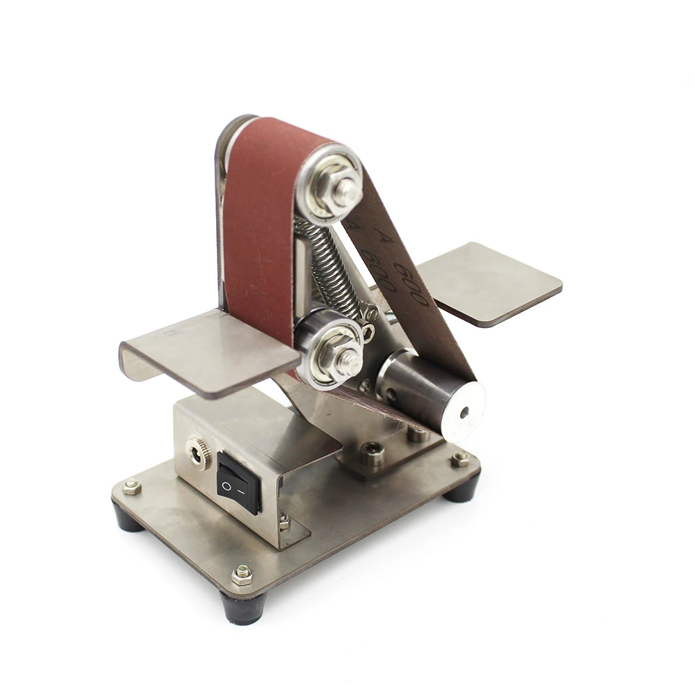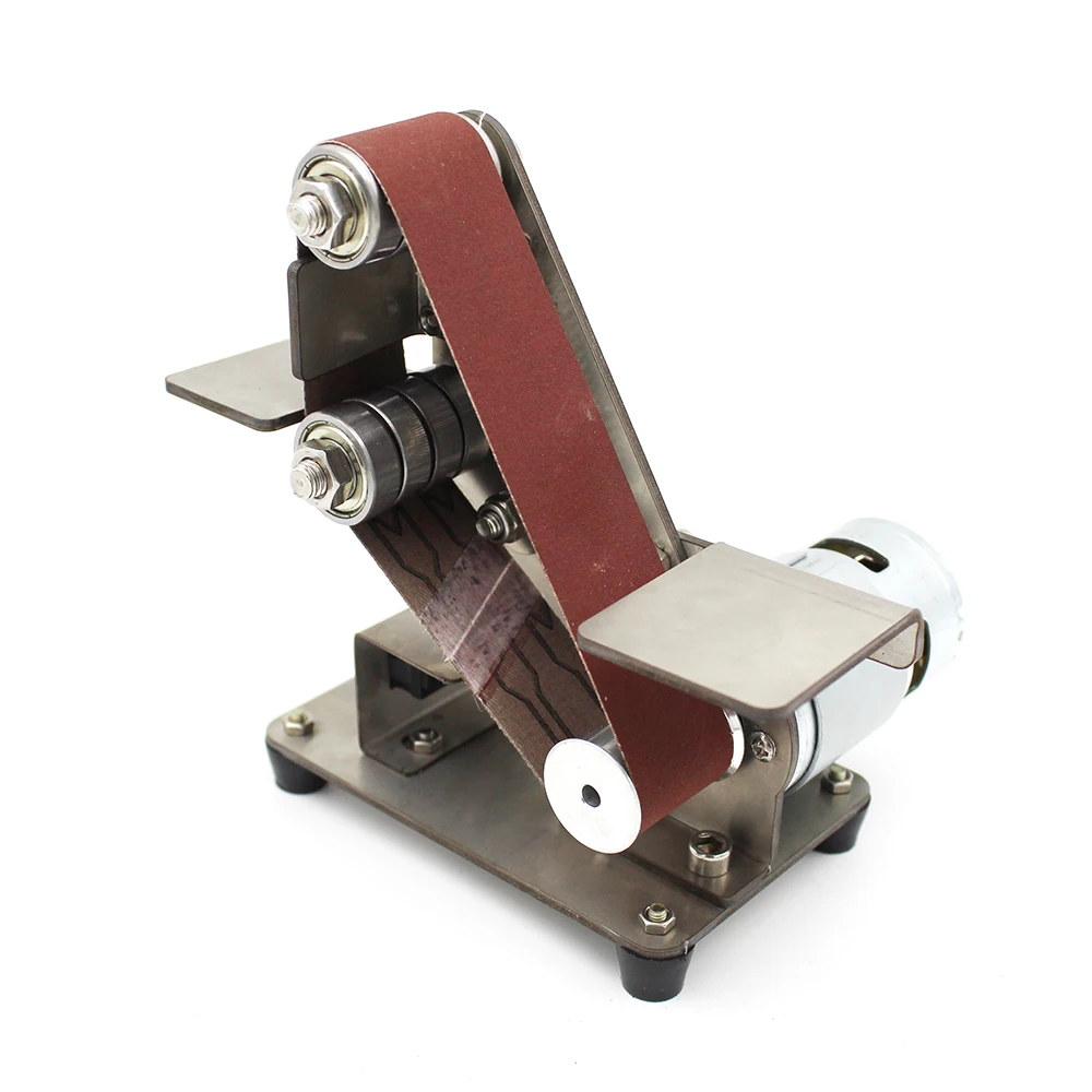 This is a multifunctional belt sander, mini portable, low noise, can be used for high-speed steel drill bit rough grinding, blade edging, fine grinding tungsten steel turning tool, polishing Bodhi root, etc., easy to install and operate, is a nice home DIY tool.