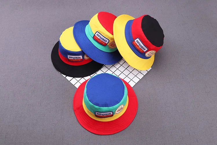 Hylidge New Korean Style Children's Hat Bread Superman Label Baby Bucket Hat Fashion Color Matching Boys and Girls Bucket Caps