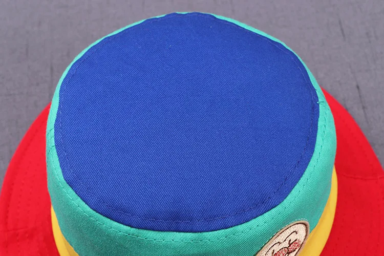 1) Goods: Children's labeling flag color matching Bucket cap 2) Item No.: Weight about 69.0g 3) Size: - Cap 50cm - Suitable for head circumference: 48-50cm / reference age 6 months - 24 months, depending on the head circumference 4) Color: multicolor 5) Product introduction - fashion labeling flag - color matching design
