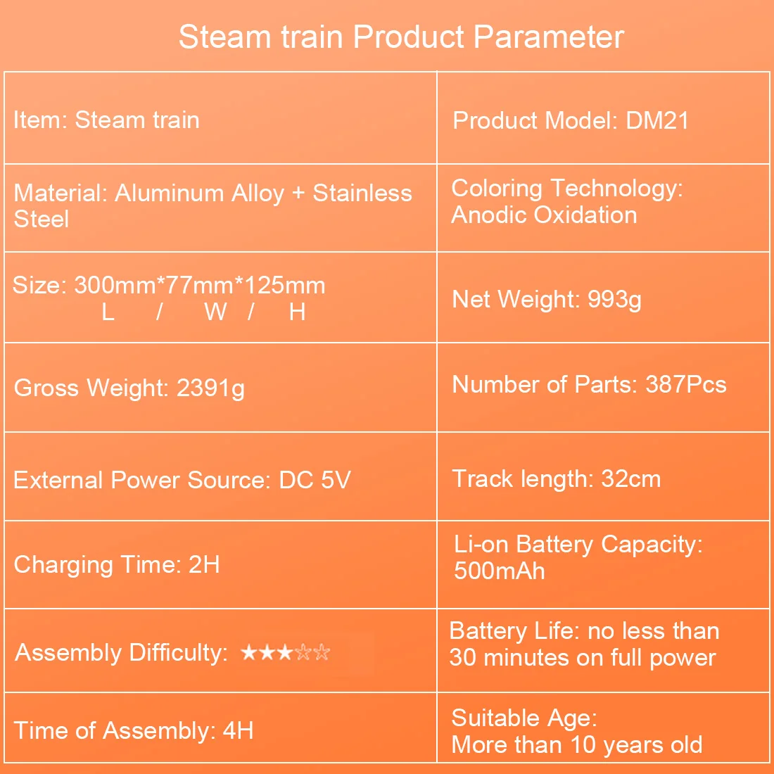 . Сборка DIY: Требуется самостоятельная сборка. Наслаждайтесь этим в процессе сборки. Готовый размер 60 см. Расстояние между дорогами составляет 6 см, подходит для всех металлических паровых поездов в сборе электрической металлической модели (арт. № DM21), также подходит для других поездов