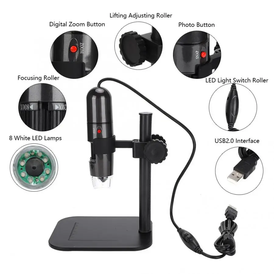 50-1000X Handheld USB Digital Microscope 8 LED Magnifier Camera Endoscope with Lifting Bracket