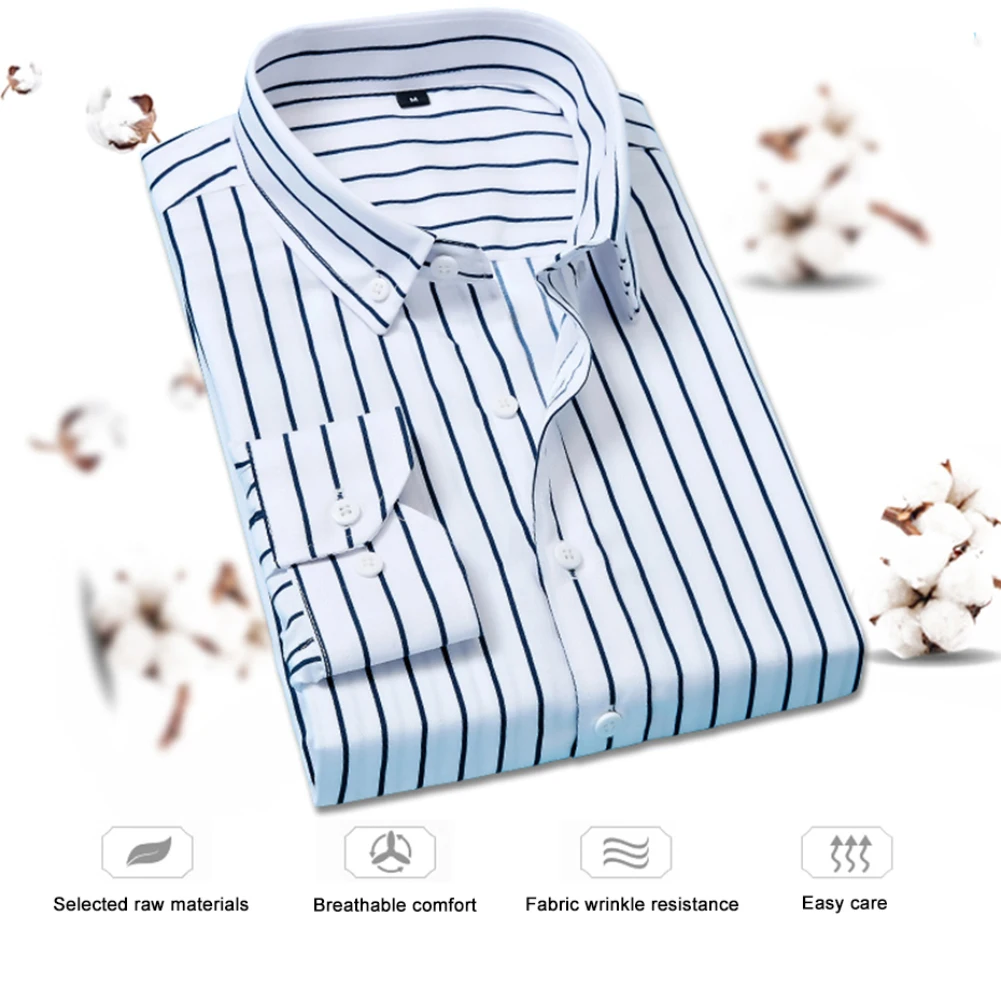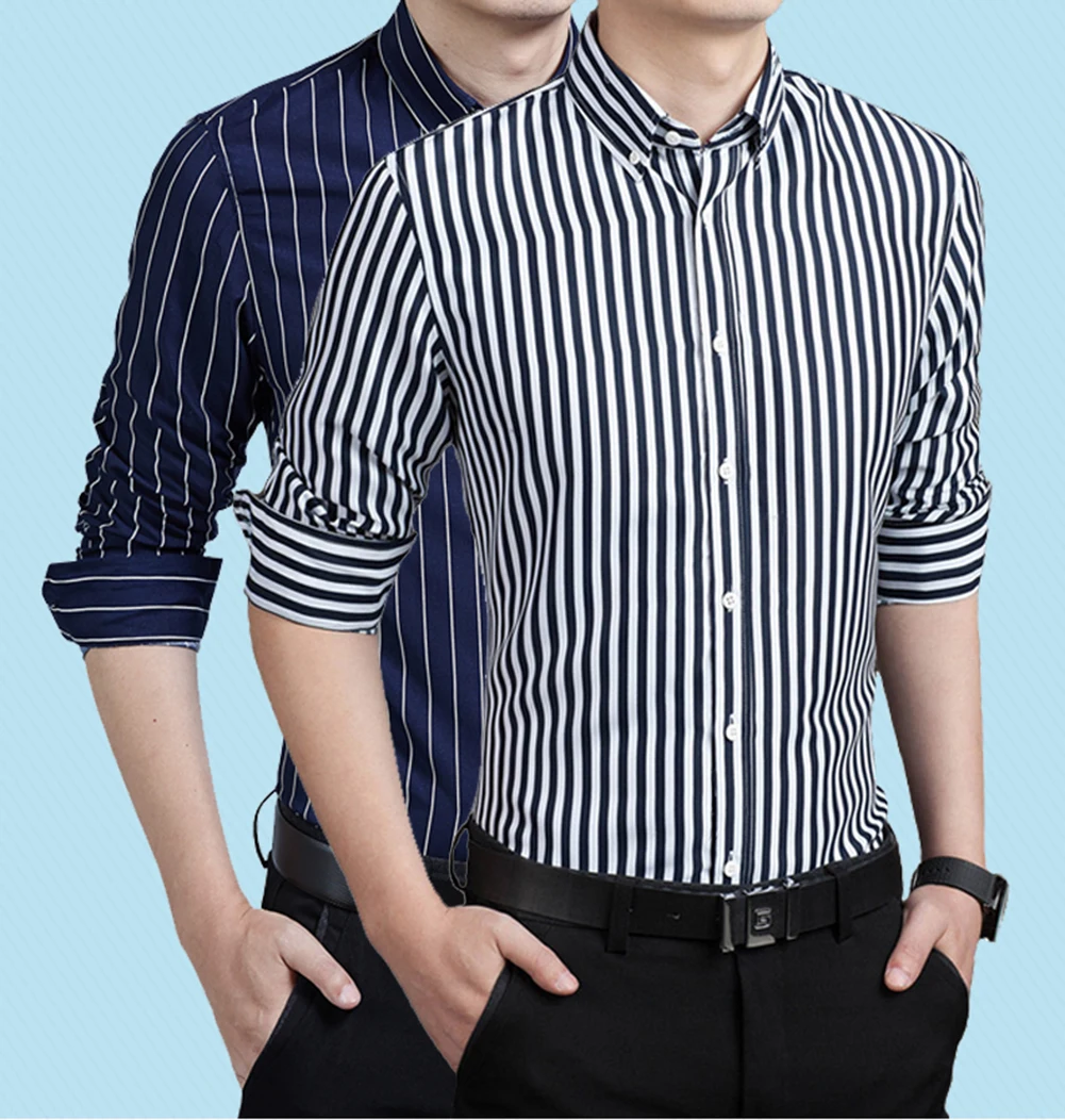 Модная мужская рубашка в Вертикальную Полоску, мужская деловая Повседневная рубашка с длинным рукавом на весну и осень, топ M-5XL