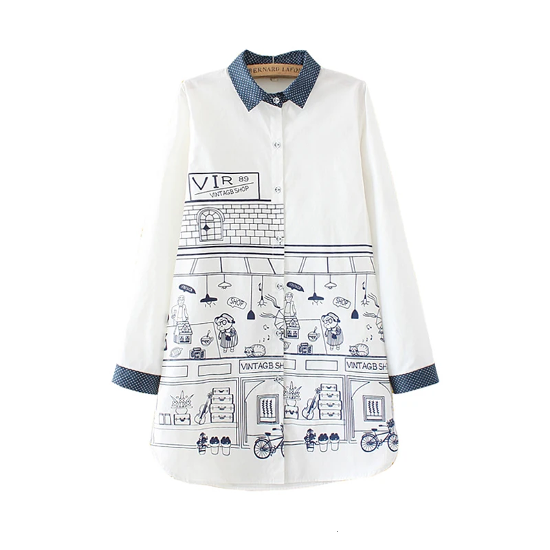 Plus Size XXXL Wit Gedrukt Vrouwen Blouses Sprin Zomer Lange Mouw PoplineBlouse Shirt Vrouwen Tops Big Size Blusas Feminina