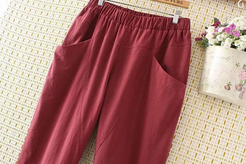 Plus size 5xl women OL cotton linen high waist harness bow tie string elastic waist pockets casual pants