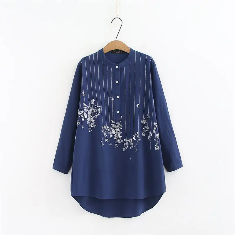 Plus size tangerine collar long sleeve blouse women Birth red white dark blue shirt Spring autumn ladies tops